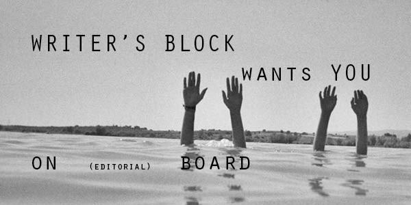 Does this sound wildly interesting to you? Then apply as soon as possible by sending a short motivation and your CV to info@writersblockmagazine.com (subject: Application), and maybe you’ll be the one to join our editorial board real soon. We’d love to hear from you!