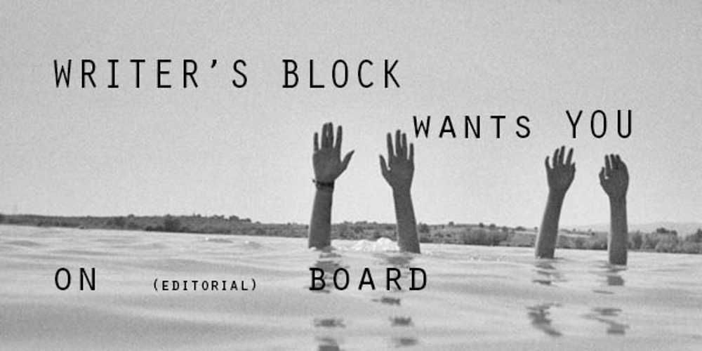 As some of our lovely editors will soon be pursuing their dreams and academic careers elsewhere, Writer’s Block is looking for new editors to join the editorial board during the next academic year! From September on, you’ll be editing poetry, prose, essays and other literary works, writing various articles for our website, and putting together new, must-read issues of Writer’s Block Magazine.