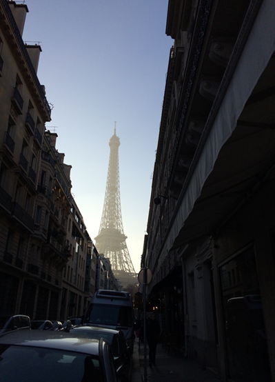 There were brightly sunlit puddles in the streets and sidewalks from last night’s rain, with cigarette butts floating in them from last night’s revelry, and a smeared baguette against a curb. Paris is always somehow both fancy and slightly derelict at the same time.