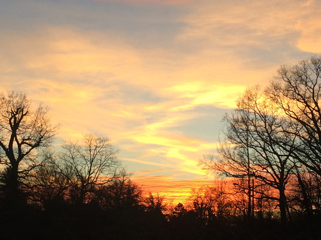 It was a beautiful winter day. The azure sky was littered with white scribbles of cloud. And then at dusk those same scribbles piled up in the west and burned gold and pink as the sun embraced the bank of clouds in a rage of apricot and flame, before smoldering to embers on the horizon in the brief twilight, and then purpling into dew and darkness.